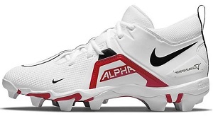 ![]() | Nike Alpha Menace 3 SharkFarbe: weiß-rot, Größe: 7,5(EUR 40,5) - 11(EUR 45) - 11,5(EUR 45,5) - 12,5(EUR 47) Eigenschaften: Synthetic leather is long lasting and supportive while keeping your feet comfortable Molding over the front makes it tough and durable on the field 3rd edition adds another layer of containment and support with wings on the sides that integrate with the laces for a secure fit Soft foam midsole cushions your stride Nike Fastflex technology with rubber studs creates flexibility and traction for bursts of speed, quick cuts and sudden stops Preis: 89,00 € |