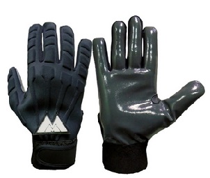 |  | MM Receiver Gloves BlackGröße: S(6-7"), M(8-9"), L(10-11"), XL(12-13"), XXL(14-15") Farbe: schwarz/grau Eigenschaften: Palm: Synthetic Leather Handinnenfläche aus Silikon Grip. Backside: 4 way stretch fabric 85% Nylon, 15% Elastane Neoprene: 100% Polyester Preis: 22,00 € |